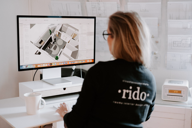 Rido on syntynyt rakkaudesta toimivuuteen ja estetiikkaan: nelilapsisen perheen äitinä koin, että moni asia saadaan muutettua toimivaksi, kun tilat suunnitellaan hyvin. Tästä sain kipinän lähteä opiskelemaan uutta alaa reilut parikymmentä vuotta sitten.