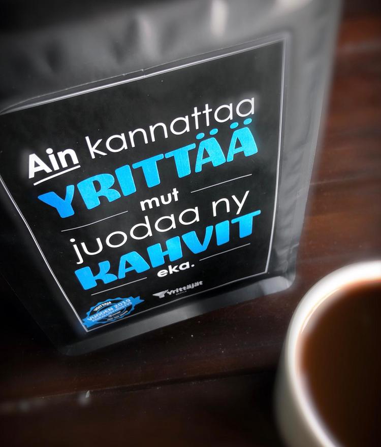 Vuonna 2020 saimme oman upean KAHVIN! ”Ain kannattaa yrittää, mut juodaa ny kahvit eka” -pusseja on jaettu merkkipäiväänsä juhliville sekä loppuvuodesta myös kiitosta saaneessa Yrittäjien kahviketjussa. Kahvipussi on uniikki, Vuoden 2019 paikallisyhdistys -juhlakahvi, eikä sitä saa ostettua erikseen. Kahvin paahtaa paikallinen Paahtimo.