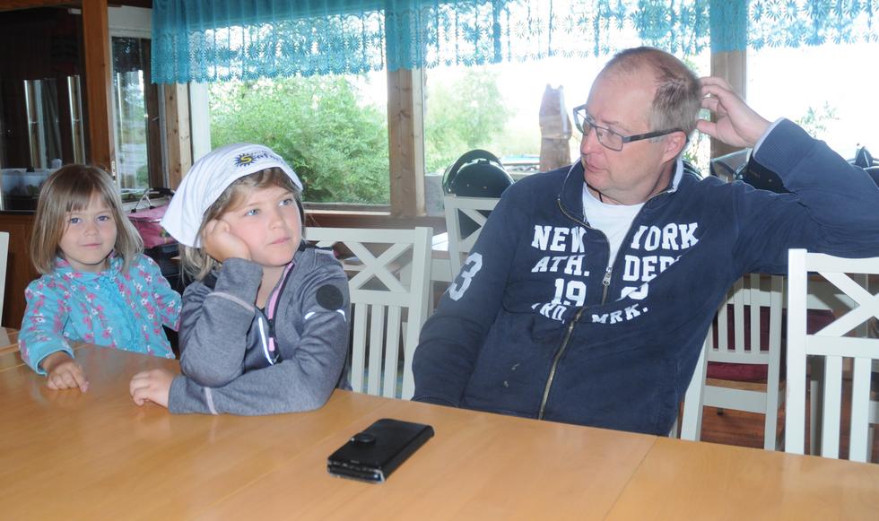 YRITTÄJÄ MYÖNTÄÄ yhdeksi työnsä parhaista puolista sen, että sitä pystyy tekemään kotia käsin. Safarit käynnistyvät käytännössä aina perheen omakotitalon pihapiiristä, mikä on siis myös yrityksen osoite. Hilla ja Minttu ovat etenkin kesällä olleet isälle isoksi avuksi. Nytkin he auttavat iskää haastattelussa.