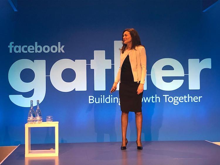 Gather-tapahtumassa puhuivat muun muassa Facebookin operatiivinen johtaja, kirjailija Sheryl Sandberg (kuvassa), Irlannin EU-asioiden ministeri Helen McEntee ja Facebookin Euroopan-johtoa. Päälavalla kuultiin myös yrittäjien tarinoita. Inspiroivien puheenvuorojen lisäksi osallistujat saivat viimeisintä tietoa ja vinkkejä lukuisissa Facebookia ja Instagramia koskevissa työpajoissa.