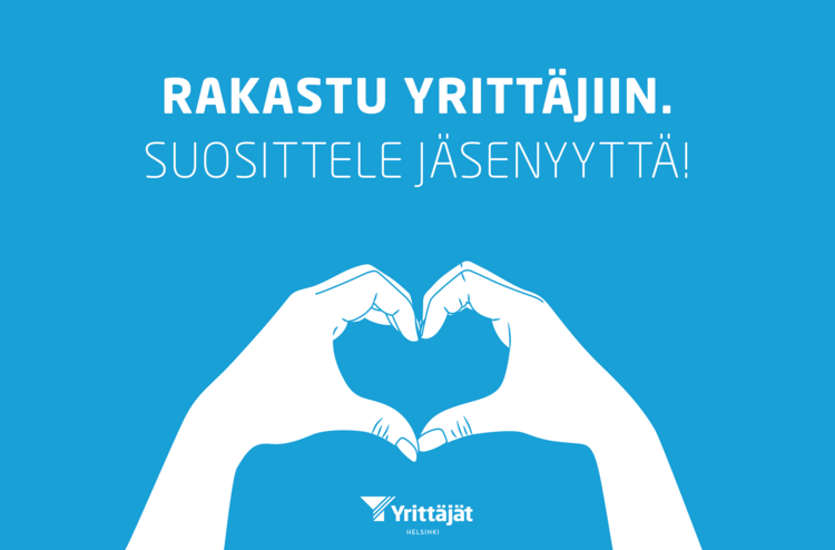 Rakastu Yrittäjiin – ja innosta yrittäjäystäväsi mukaan Helsingin Yrittäjien jäseneksi. Saat jokaisesta jäseneksi liittyneestä uudesta jäsenestä 40 euron arvoisen lahjakortin valintasi mukaan joko Tiketti Oy:stä, Lihatukku Veijo Votkin Oy:stä tai Veljekset Halonen Oy:stä.