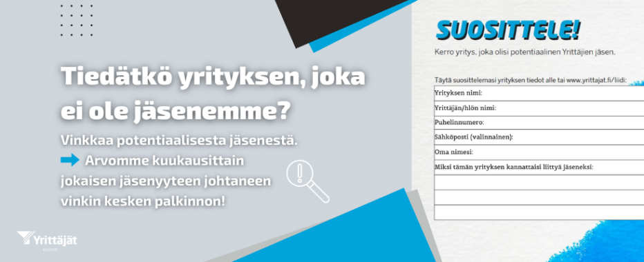 Haluaisitko suositella yrittäjäjärjestön jäsenyyttä yrittäjälle, joka ei vielä ole jäsen?