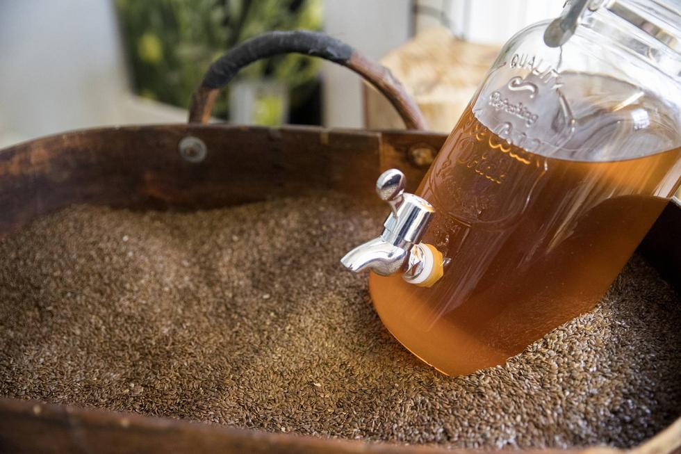 Korjuukypsät siemenet ovat kauniin ruskeat. Pellavaöljy syntyy omassa puristamossa.