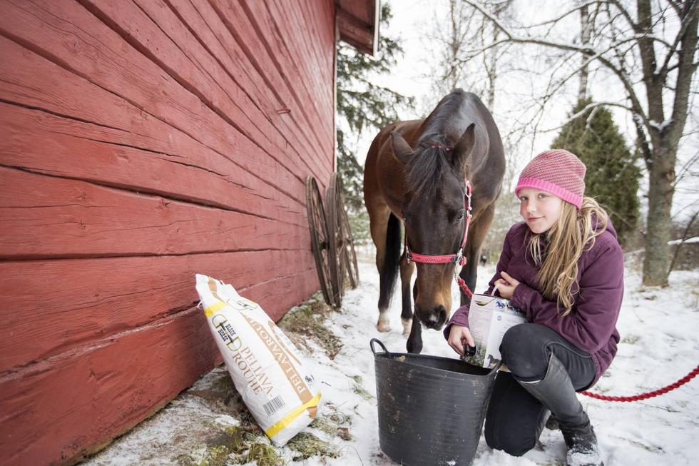 Yrityksen ensimmäinen tuote oli hevosten pellavarouhe. Se on edelleen myydyin tuote. Lassi-hevoselle sitä tarjoaa Elli Kataja.
