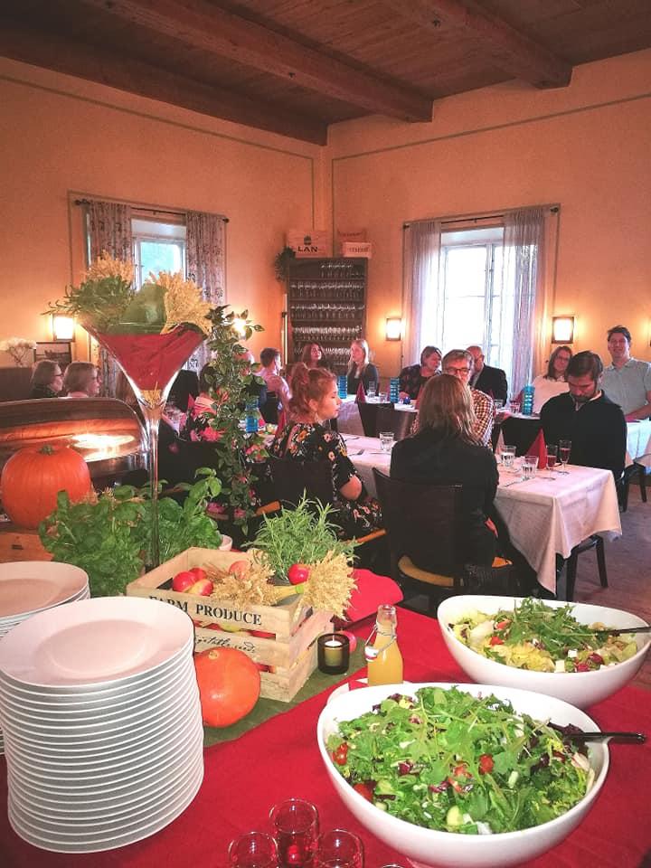 Paikalle saapui noin 40 henkilöä ja iltaa vietettiin rennoissa tunnelmissa heti alusta alkaen. lllan menusta vastasi tilan oma keittiö ja siihen sisältyi maistuvaa riistakäristystä puikulamuussin kera sekä maistuvat salaatit sekä punajuurigratiinilisuke.
