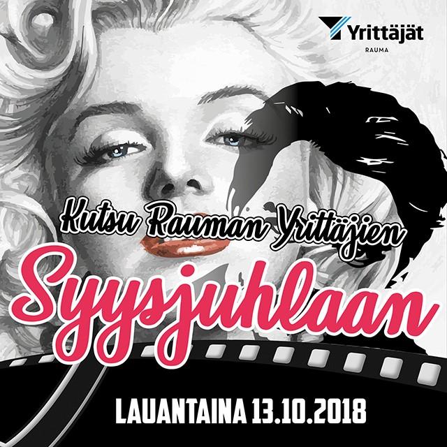 Rauman Yrittäjien perinteiset syysjuhlat ovat täällä taas! 13.10.2018 Ooperiin kutsutaan kaikki jäsenet ja yhteistyökumppanit. Syysjuhlassa palkkitaan Rauman Yrittäjät -säätiön toimesta Vuoden yritys 2018 ja Rauman Yrittäjät ry:n valitsema Vuoden nuori yritys 2018.Tapahtuman teemana on elokuvat ja leffatähdet.