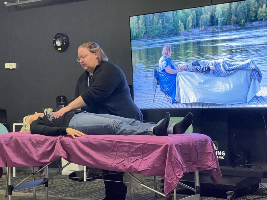 Hyvinvointiyrittäjä, Katja Puolakka esitteli kraniosakraaliterapiaa. Saimme esittelyn hoidosta, yrittäjä Tarja Kupias vapaaehtoisena. Lisätietoja tästä mielenkiintoisesta ja lempeästä hoitomuodosta saat Katjalta. Paikalla olikin useampi hyvinvointialan yrittäjä ja keskustelu sekä verkostoituminen oli vilkasta. Idea hyvinvointimessuista Kotkan tai Pyhtään mallin mukaan virisi. Todettiin että tarvetta tällaisille messuille olisi. Kuka voisi järjestää. Saataisiinko paras tulos yhdessä kaupungin, yrittäjien, yhdistysten jne. kanssa. Kenelle messut olisi suunnattu, lapset, nuoret, eri-ikäiset, seniorit? Keskustelun toivottiin jatkuvan seuraavilla aamukahveilla ja ehkä idean voisi heittää uudelle kaupunginjohtajalle Raatihuoneella 17.10. (keskustelu on jatkunut tämän jälkeen vilkkaana WhatsAppissa ”LY jäsenten yhteistyöryhmä”).