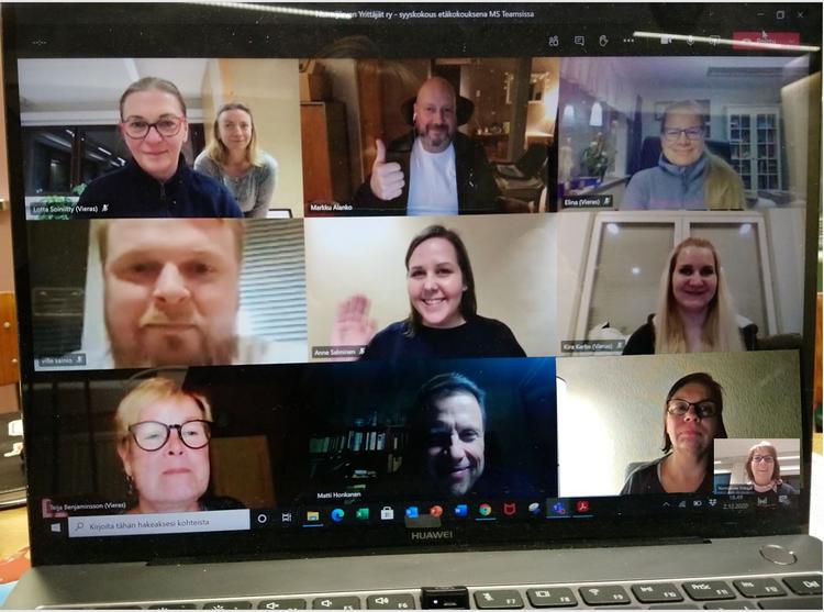 Jutun kuvituskuvassa yhteiskuva hallituksesta 2020-2021 poislukien Jani Valtajärvi.
