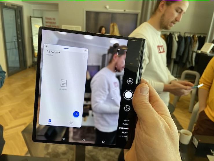 Juuri sovellusten samanaikainen käyttö avaa käyttäjälle taittuvan näytön parhaat puolet. Mate Xs:ssä näytölle saa samaan aikaan kaksi sovellusta. Sen lisäksi näytölle voi siirtää kolmannen sovelluksen ”kelluvaksi”, eli sen paikkaa voi siirtää kahden muun sovelluksen päällä. Huomionarvoista on, että läheskään kaikki sovellukset eivät tue näytön jakamista. Sovellusten välillä voi siirtää tekstiä, kuvia ja tiedostoja raahamalla ne ikkunasta toiseen.