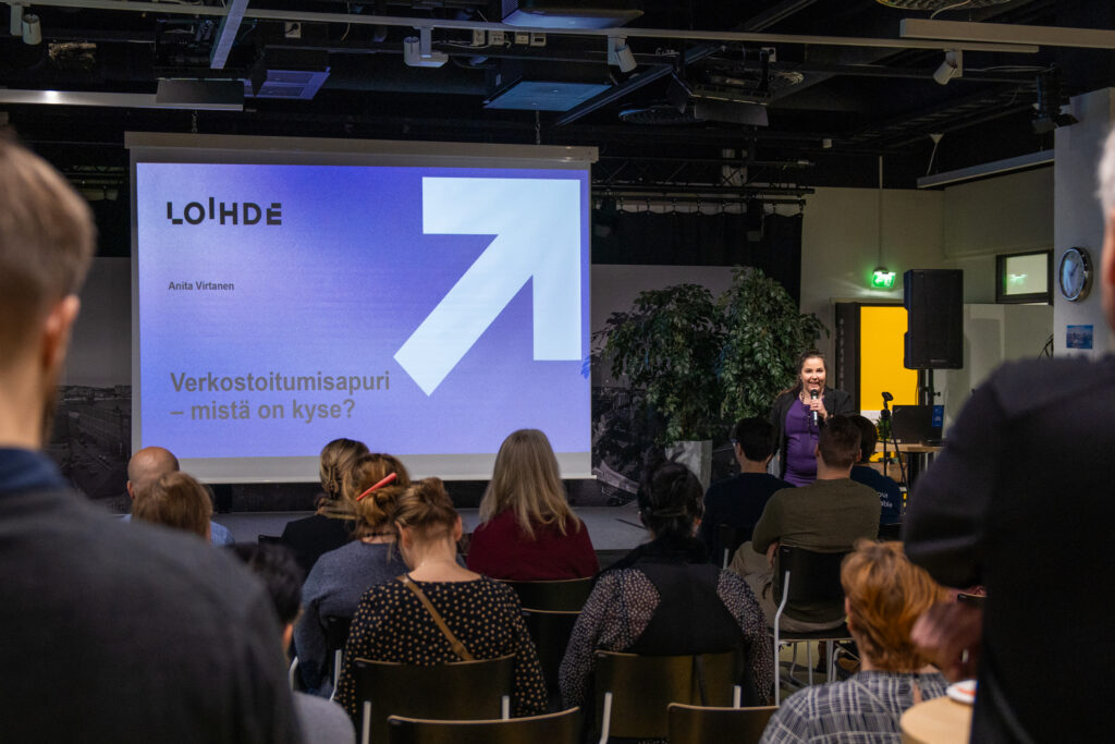 Tänään 25.11.2024 Finlaysonin Kohtaamisia -tilassa järjestetyssä hankkeen loppuseminaarissa alueen pk-yrittäjät pääsivät testaamaan Verkostoitusmisapuria tositoimissa, kun apuri yhdisti yrittäjiä samalla kertoen, mistä aiheista ja yhteistyömahdollisuuksista heidän kannattaisi keskenään jutella.
