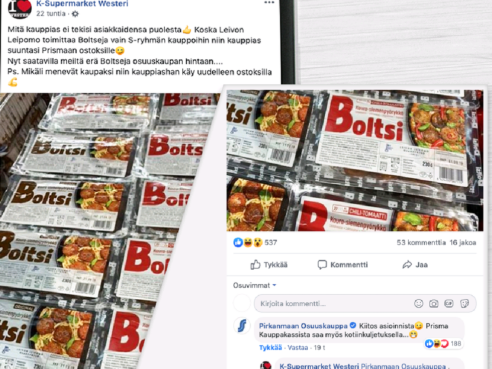 Tamperelaisen K-Supermarketin kauppias Ari Ruissalo kertoi tänään Pirkanmaan Osuuskaupan Facebook-profiilissa käyneensä ostamassa Leivon Leipomon Boltsi-pyöryköitä myyntiin omaan kauppaansa.