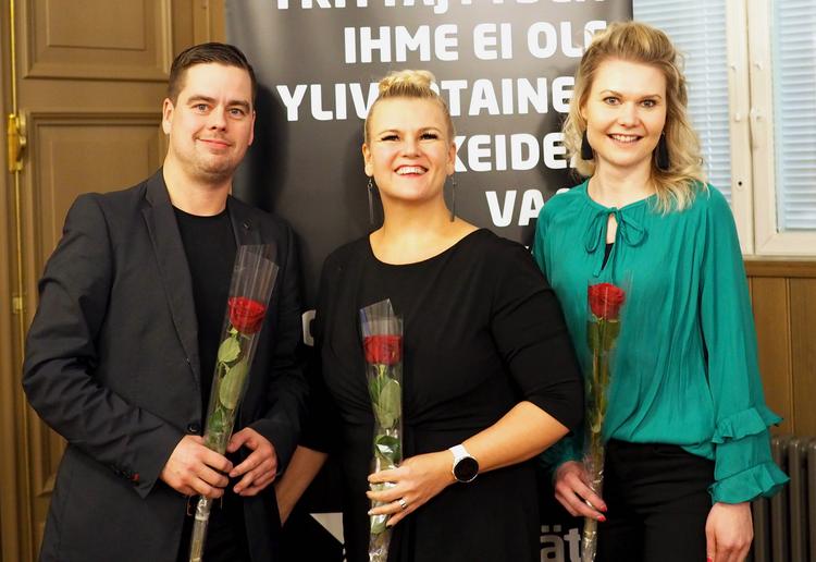 Tapu Holttinen puheenjohtaja, Johanna Soilu varapuheenjohtaja, Kimmo Valkeinen varapuheenjohtaja.