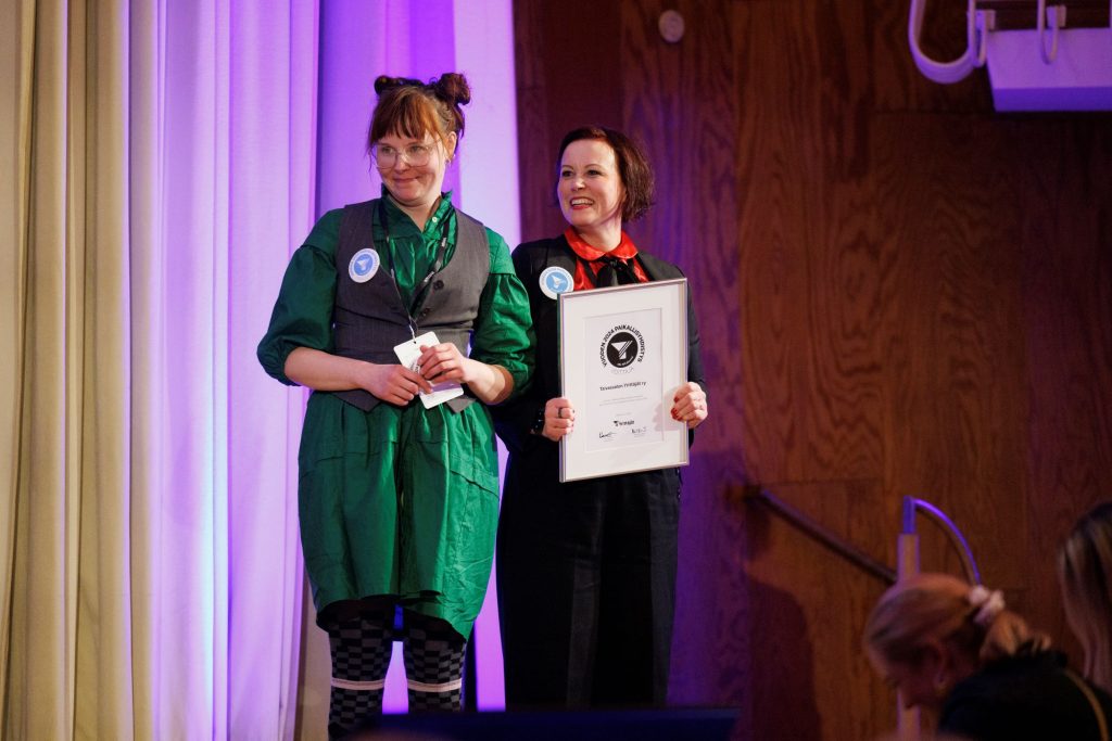 Taivassalon Yrittäjät palkittiin pienimpien yritysten parhaana. Kuvassa sihteeri Johanna Österman ja puheenjohtaja Vilja Lahdenperä. Kuva: Atte Kajova