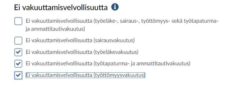 Vakuuttamisen poikkeustilanteen tyyppi: Ei vakuuttamisvelvollisuutta (työeläkevakuutus)