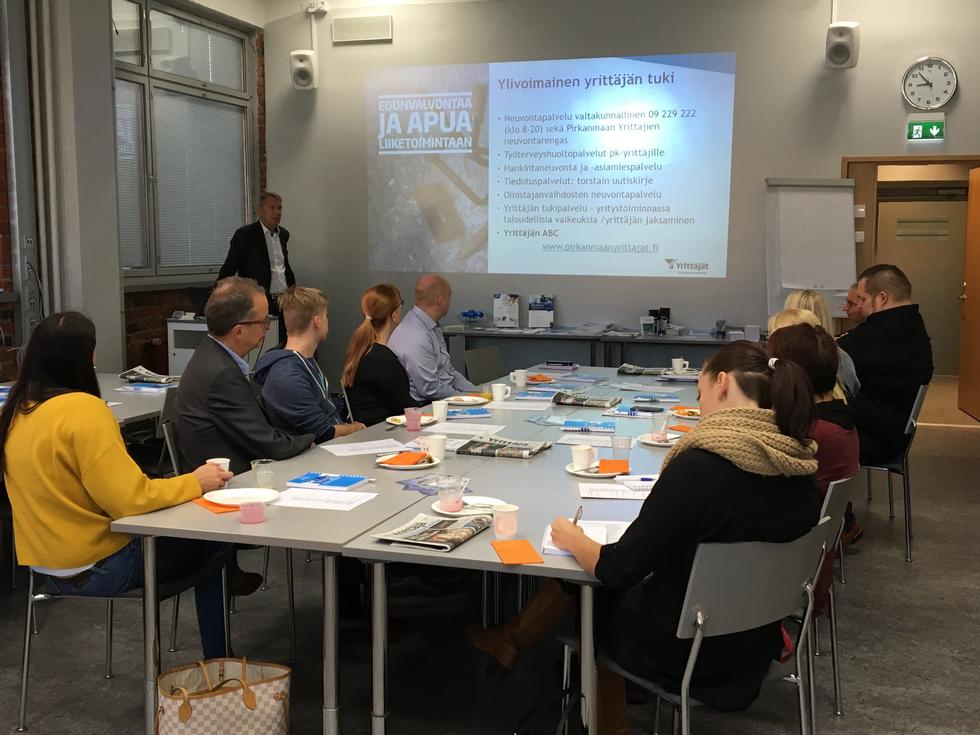 Mäkinen piti tilaisuuden aluksi katsauksen yrittäjäjärjestön toimintaan ja muistutti jäseneduista kuten neuvonta- ja tukipalveluista. Esittäytymiskierroksella jokainen pääsi kertomaan omasta yrityksestään ja sen palveluista.