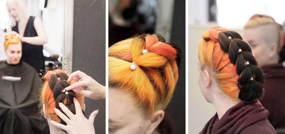 Heidi Kuoppalan (Divanera) juhlaletin hiusmallina Sanni Marjamäki.