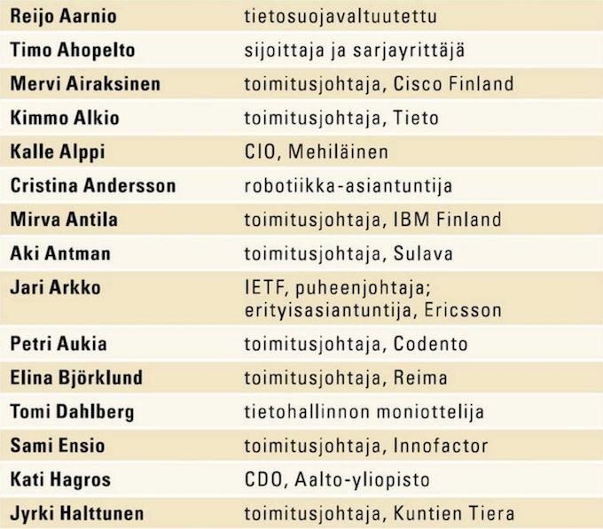 It-vaikuttajia (koko lista löytyy Tivin verkkosivuilta):