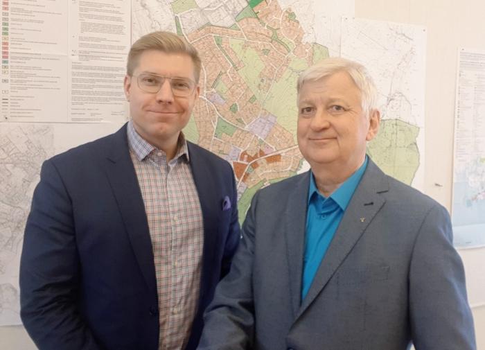 Kuvassa kunnanjohtaja Sam Vuorinen ja Myrskylän Yrittäjien pj. Aku Eronen.