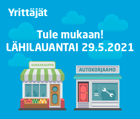 Yrittäjä: jos haluat lähteä mukaan Lähilauantai-tapahtumaan, lataa siihen työkaluja (julistepohjia, bannereita, some-materiaaleja) Lähilauantain 29.5.2021 linkistä.