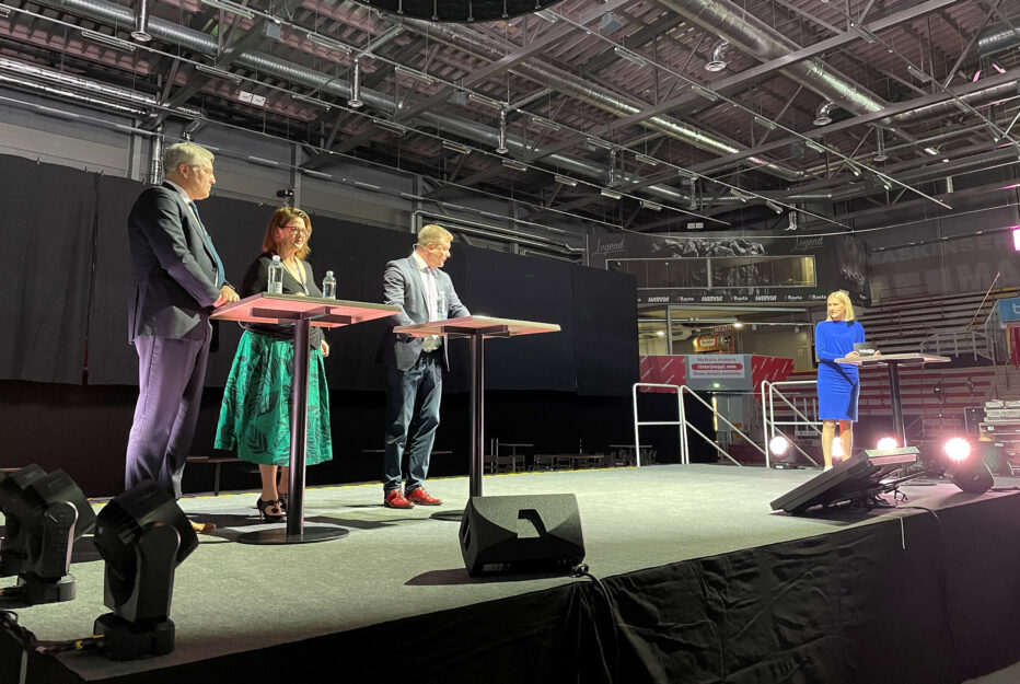 Noin tuhat osallistujaa keräävän Kunnallisjohdon seminaarin ensimmäisessä paneelissa kehitystyö- ja ulkomaankauppaministeri Ville Skinnari, Kuntaliiton toimitusjohtaja Minna Karhunen sekä Suomen Yrittäjien toimitusjohtaja Mikael Pentikäinen keskustelivat Suomen kasvun ja elinvoiman edellytyksistä sekä esittivät toiveita päättäjille, joita Skinnari siis edusti.