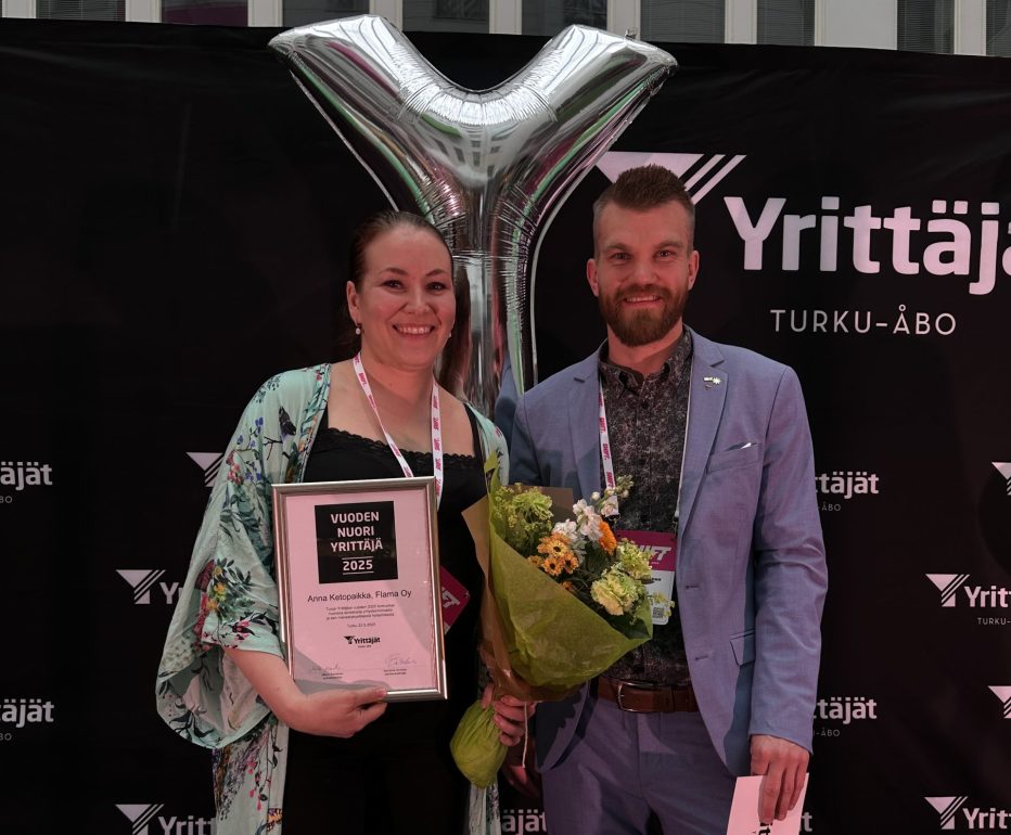 Turun Yrittäjien Vuoden Nuori Yrittäjä -palkinto jaettiin 22.05. Turun Yrittäjien kevätjuhlassa Anna Ketopaikalle, joka on 33-vuotias Tanssistudio Flaman perustaja.