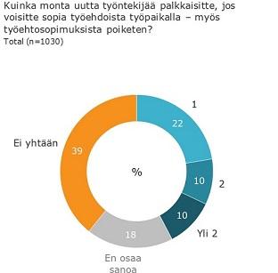 Katsottaessa vähintään kymmenen henkilöä työllistäviä yrityksiä jopa 60 prosenttia palkkaisi vähintään yhden työntekijän, jos henkilöperusteista irtisanomista helpotettaisiin. Vastaajilta kysyttiin, kuinka monta uutta työntekijää palkkaisitte, jos henkilöperusteista irtisanomista helpotettaisiin.
