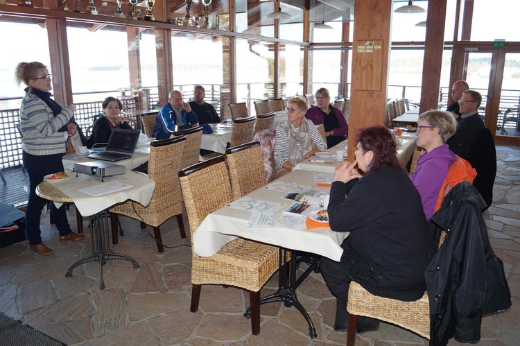 Työhyvinvoinnista kertoi Jaana Lerssi-Uskelin Työterveyslaitokselta sekä Työpaikkojen työhyvinvointiverkostosta ja Merja Hynynen Kainuun työpaikkojen työhyvinvointiverkostosta. Mukana oli yrittäjien joukko kuulemassa ja keskustelemassa.