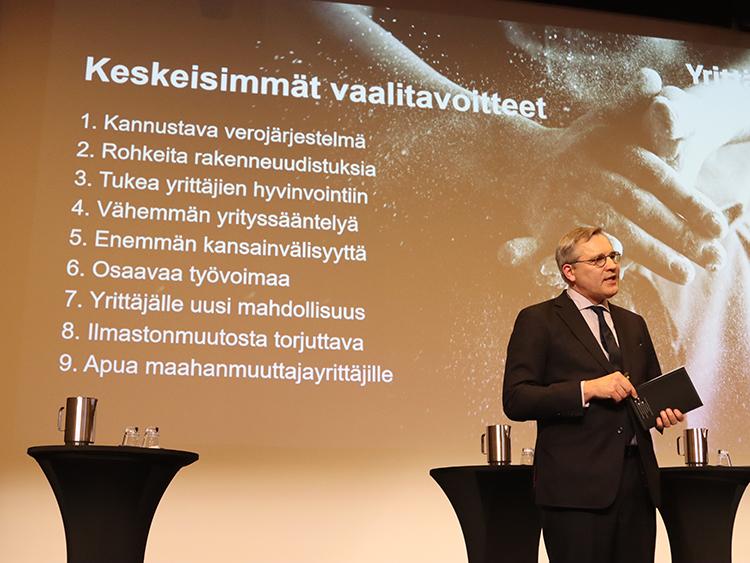 Puheenvuorossaan vaikuttajafoorumissa Yrittäjien toimitusjohtaja Mikael Pentikäinen kertoi, että esimerkiksi palkanmuodostuksen joustavuudessa Suomi on Global Competitiveness -raportin mukaan sijalla 138 vuonna 2018. Se on maailman viimeinen sija.