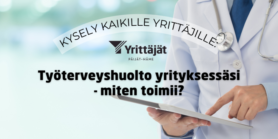 pyydämme sinua vastaamaan yrittäjän tai yrityksen työterveyshuoltoa ja sen toimivuutta koskevaan kyselyymme, sillä haluamme kuulla kokemuksiasi ja näkemyksiäsi saamastanne palvelusta.