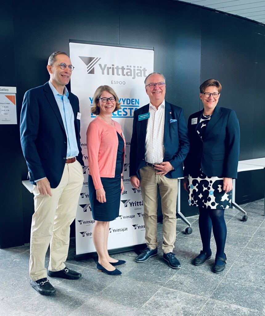 Kuvassa vasemmalta tilaisuudessa esiintyneet Juha Blomster, Sirpa Manner, Erkki Pärssinen ja Katri Sipilä.
