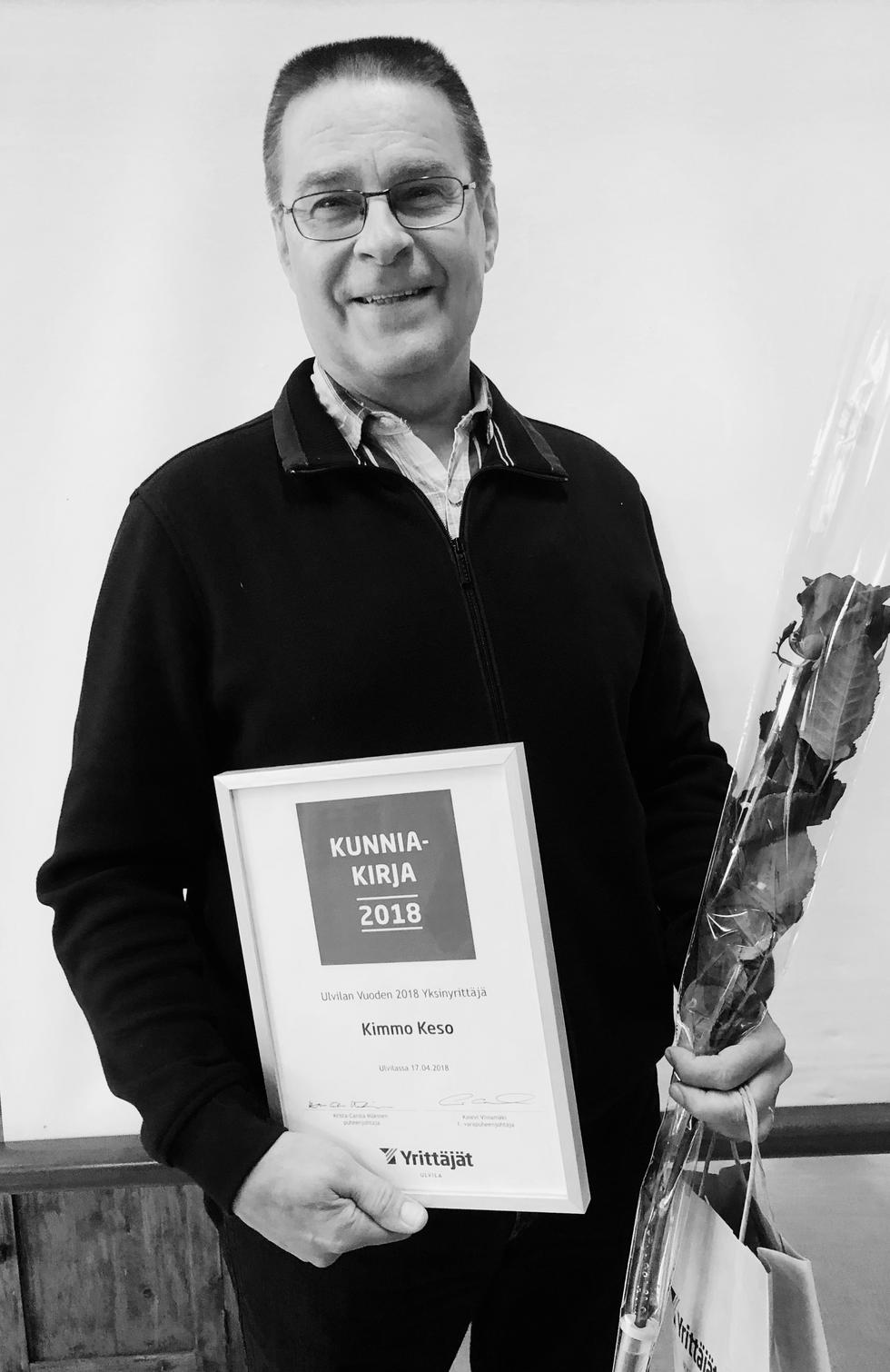 Ulvilan Vuoden Yksinyrittäjä 2018 , Kimmo Keso Ky. Onnea!