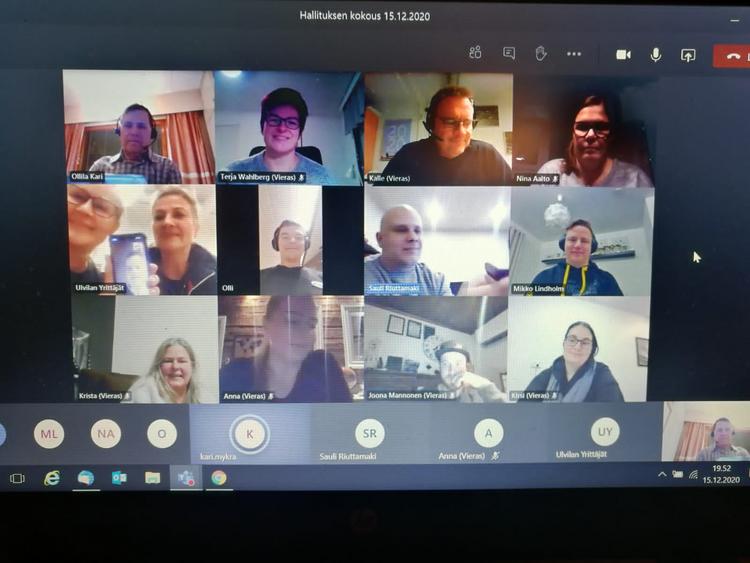 15.12. kokoonnuttiin jokainen omien koneiden sekä laitteidemme ääreen ja kävimme yhdessä virtuaalisen järjestäytymiskokouksen.