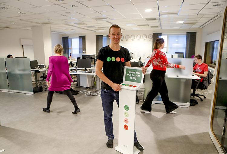 Kun Väänänen lähtee töistä, hän antaa ovensuulla hymiöpalautteen päivän töistä.