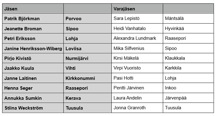 - Keski-Uusimaa: Pirjo Kivistö, Nurmijärvi