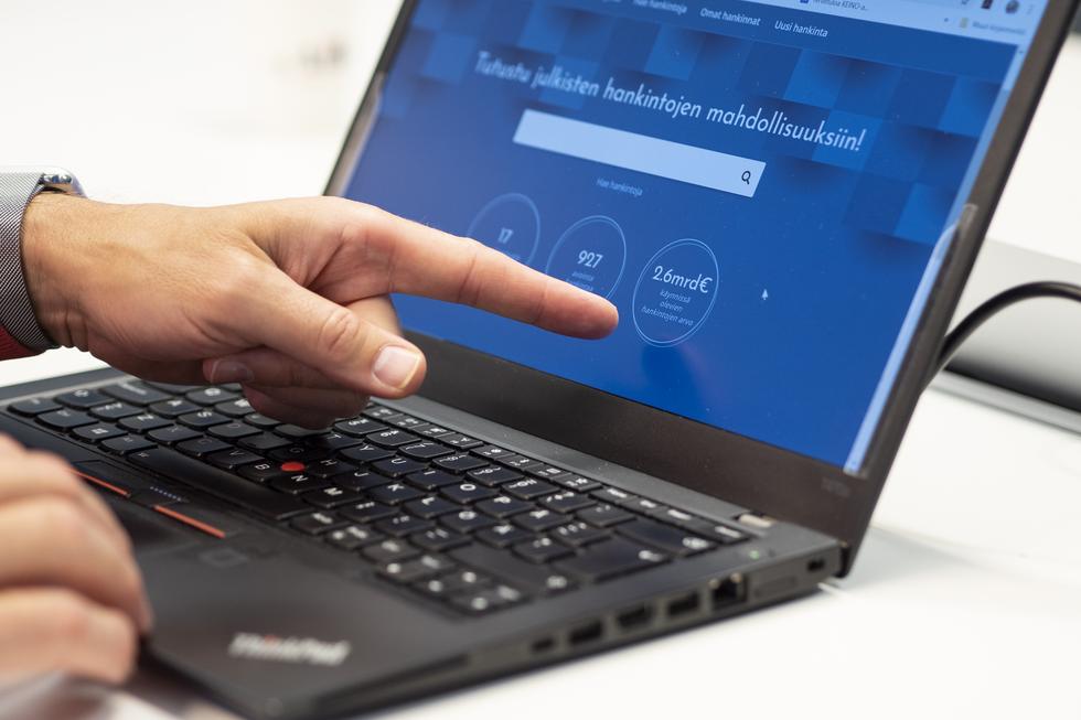 Hilman etusivulla näkyvä käynnissä olevien julkisten hankintojen arvo oli kuvanottohetkellä peräti 2,6 miljardia euroa. Kuva: Kristiina Kortelainen