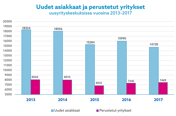 Viime vuoden aikana perustettiin uusyrityskeskusten avulla yhteensä 7 489 yritystä. Se on kaksi prosenttia enemmän kuin edellisvuonna.