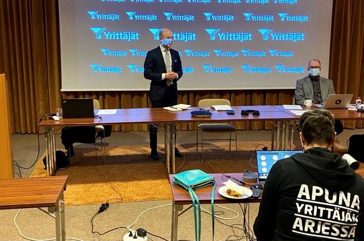 – On hyvä, että yleinen kustannustuki tulee haettavaksi jo ennen joulua. Kuitenkin Suomessa on yli 180 000 yksinyrittäjää ja yksinyrittäjätuki on myös äärettömän tarpeellinen. Se pitäisi saada jakoon mahdollisimman pikaisesti, Suomen Yrittäjien puheenjohtaja Petri Salminen totesi kokouksessa torstai-iltana.