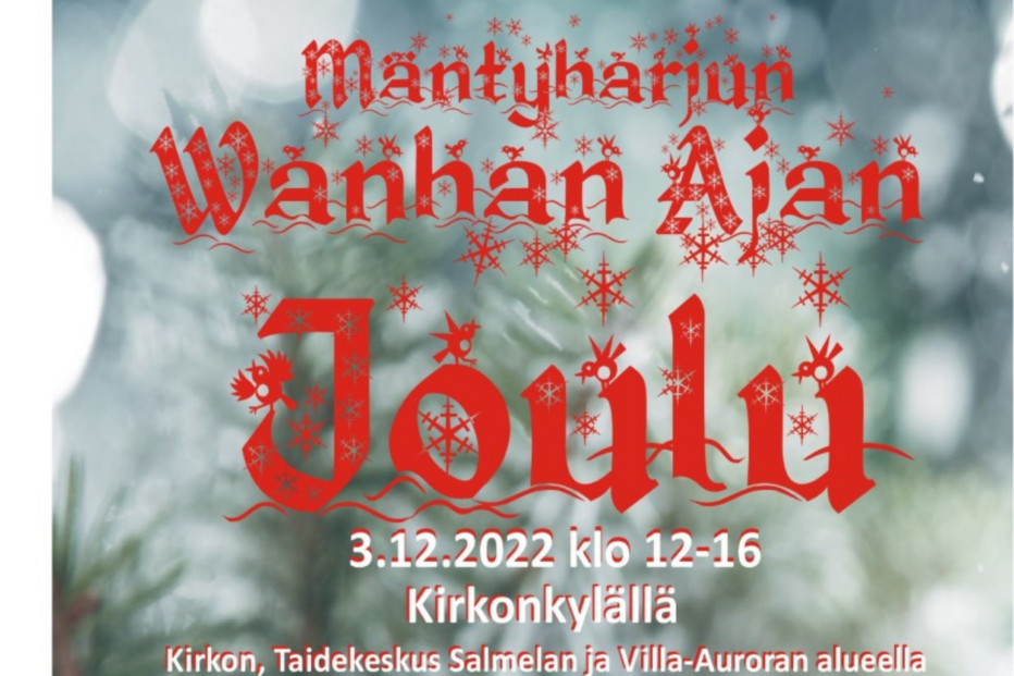 25.11.2022 klo 12:35 Uutinen Wanhan ajan joulu Tämä teksti on konekäännetty. Tervetuloa viettämään Wanhan Ajan joulua 3.12. Salmelan Kesäheinän alueella klo 12-16. Perinteinen joulutapatuma upean idyllisessä miljöössä. Jaa Kopioitu leikepöydälle