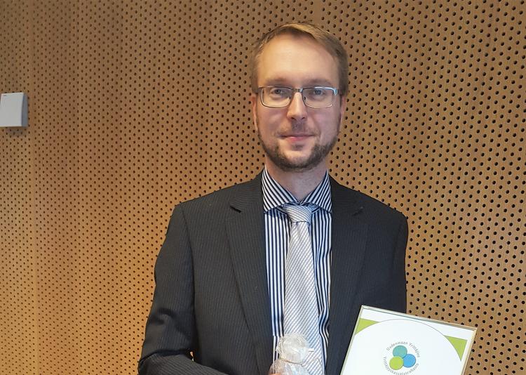 Veikkolan koulun rehtori Jussi Roms palkittiin yrittäjyyskasvatuksesta