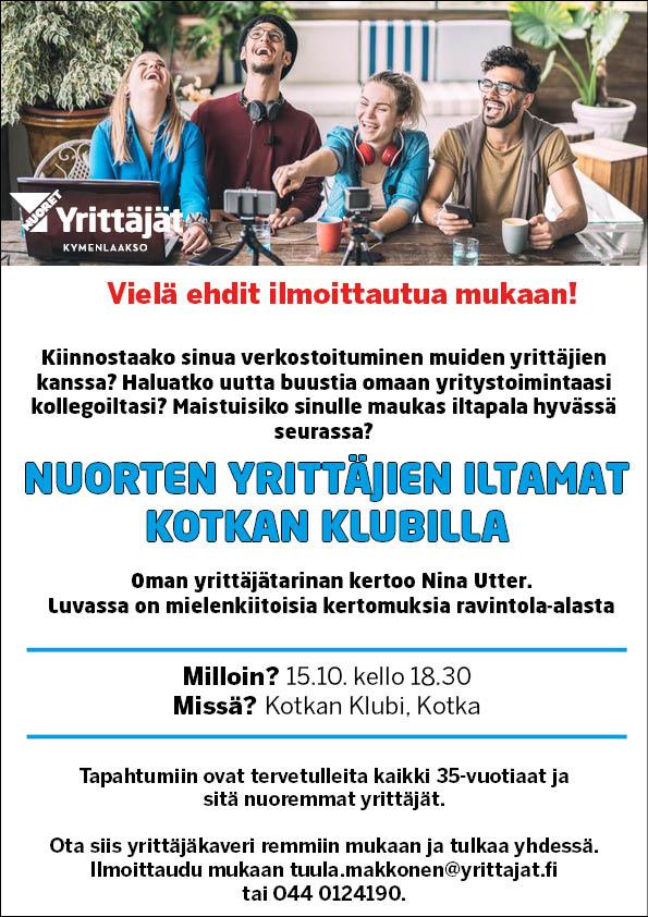 VIELÄ EHDIT MUKAAN! Nuorten Yrittäjien iltamat Kotkassa 15.10.2020