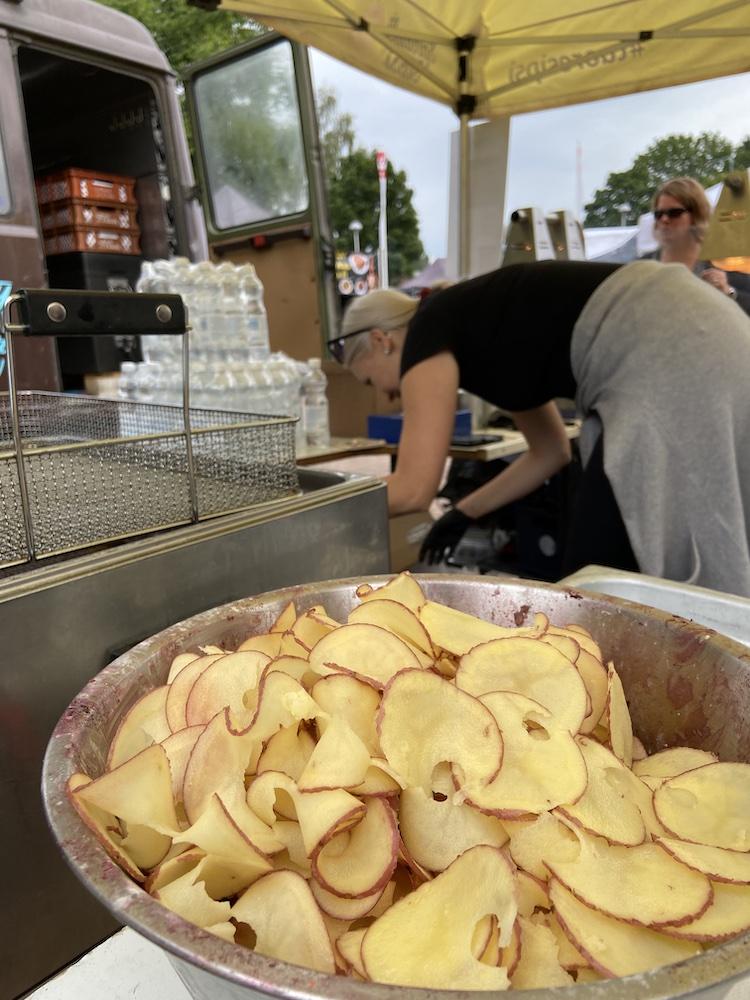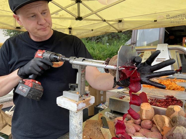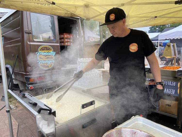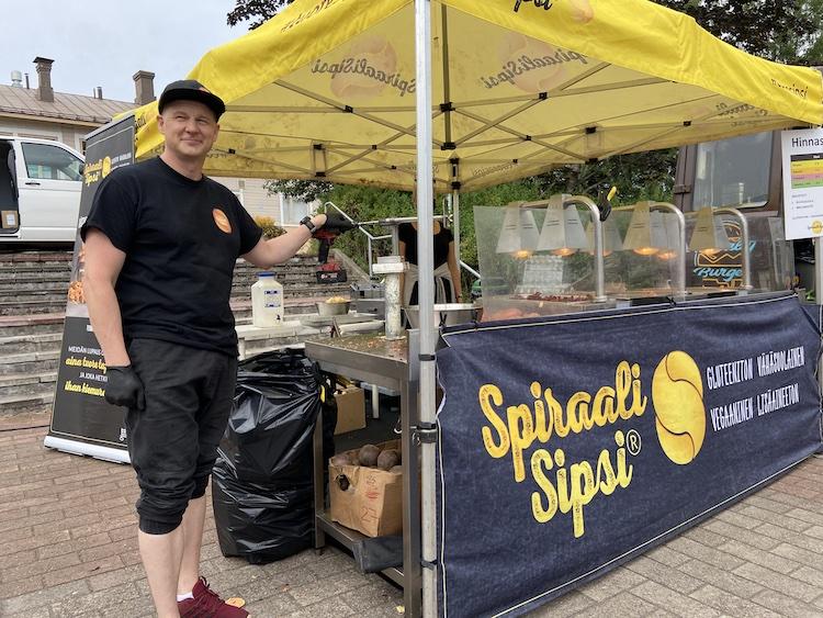 Yrittäjä Matti Martikaisen myyntikojulla käy kuhina. Lopen torilla järjestettävä street food -tapahtuma houkuttelee mökkiläisiä paikalle heti aamusta. Monelle spiraalisipsi on jo tuttu tuote.