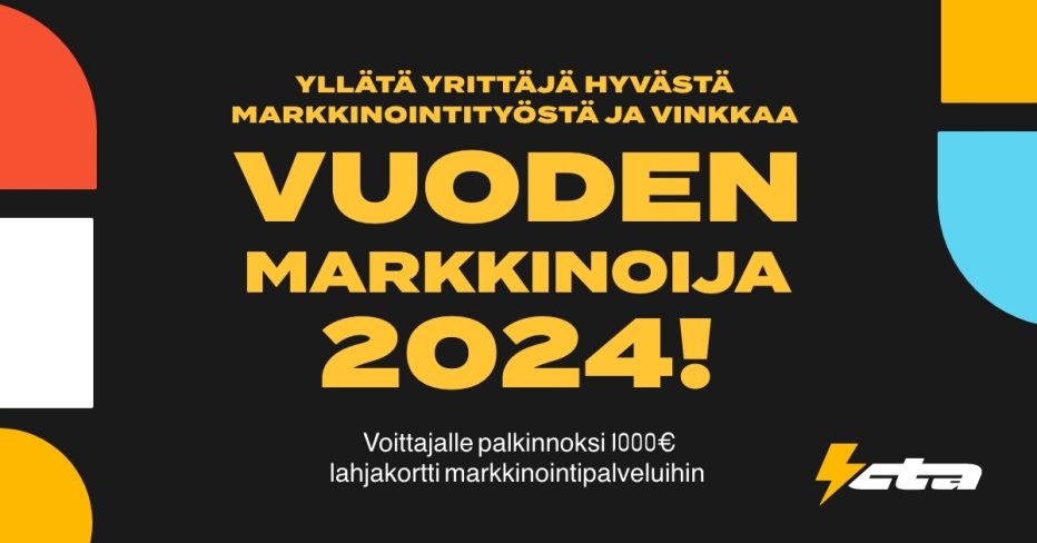 Valinnan voittajasta tekee Markkinointitoimisto CTA:n työntekijät. Voittaja palkitaan 1000€ lahjakortilla Markkinointitoimisto CTA:n palveluihin Maakunnallisessa Yrittäjäjuhlassa 29.3.2025.