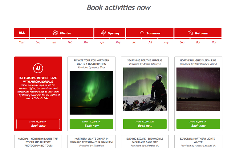 Visit Rovaniemi on ensimmäinen iso alueellinen matkailuorganisaatio, joka on avannut aktiviteettien välitysmyynnin verkossa näin suuressa mittakaavassa. Parhaiten verkkokaupassa myyvät revontuli-, poro-, husky- ja yhdistelmäretket. Kansainväliset matkailijat ovat löytäneet palvelun.