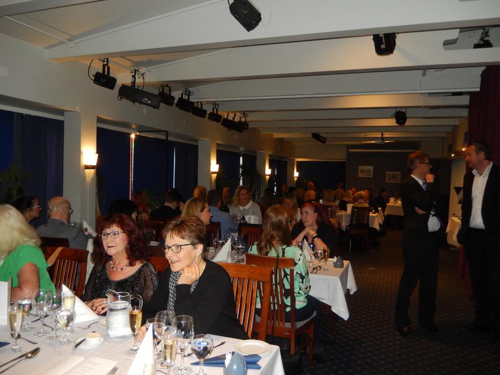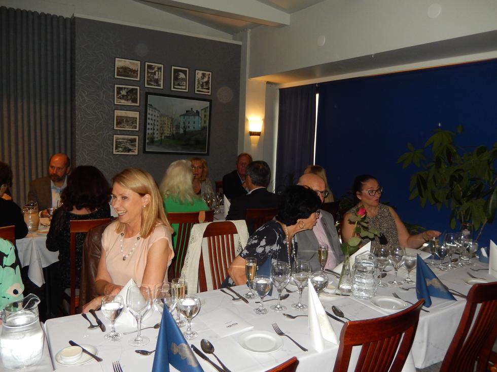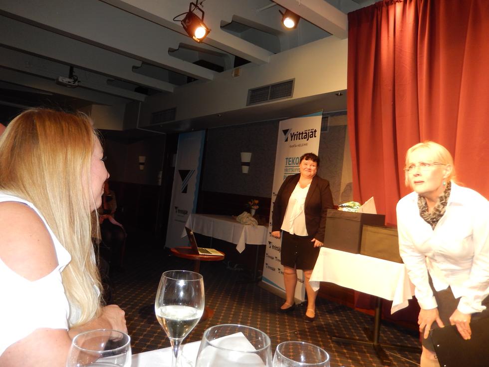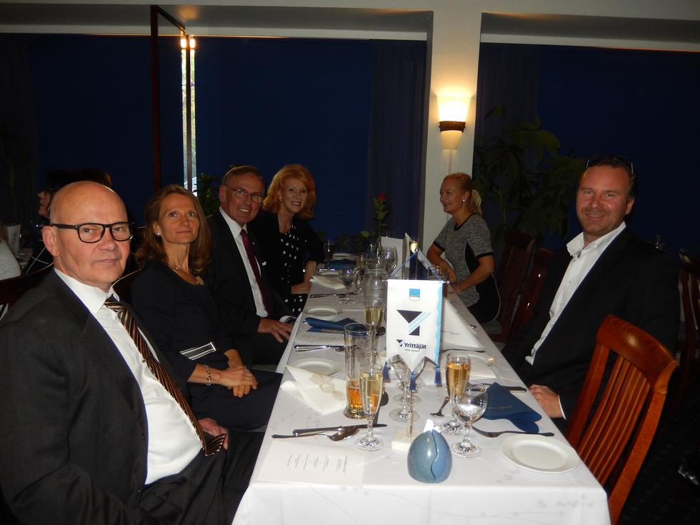 Puheiden ja palkintojen jaon jälkeen yrittäjät nauttivat maittavan pöytiin tarjoillun illallisen jälkiruokineen.