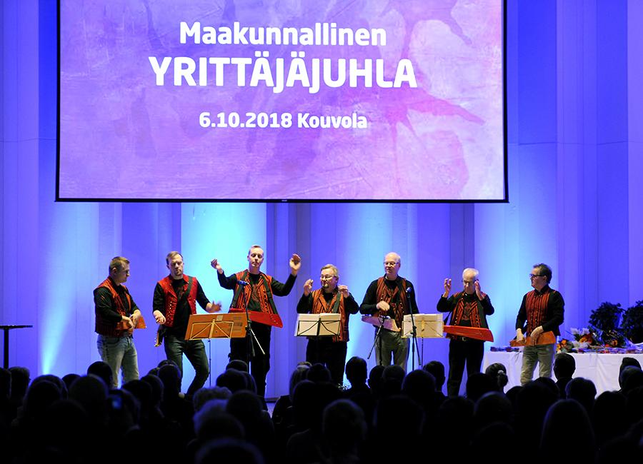 Juhlan ohjelmasta ei myöskään puutu viihde. Illan isäntänä toimii moneksi muuntautuva imitaattori Jarkko Tamminen. Juhlatervehdykset tapahtumaan tulevat tuomaan Suomen Yrittäjien puheenjohtaja Jyrki Mäkynen ja Kotkan kaupunginjohtaja Esa Sirviö. Viihteellisinä ohjelmanumeroina näemme juhlaamme personoidun hykerryttävän Jarkko Tamminen Imitaatioshow´n sekä Kymen Konservatorion tuottamia musiikkiesityksiä.