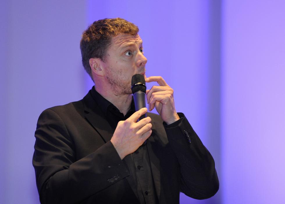Yleisöä hauskuutti koomikko Jaakko Saariluoma.