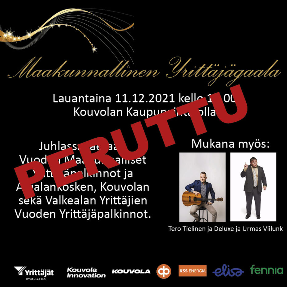 Kymen Yrittäjien maakunnallinen yrittäjäjuhla 11.12. Kouvolan kaupungintalolla joudutaan siirtämään myöhempään ajankohtaan koronavirustilanteen vuoksi.