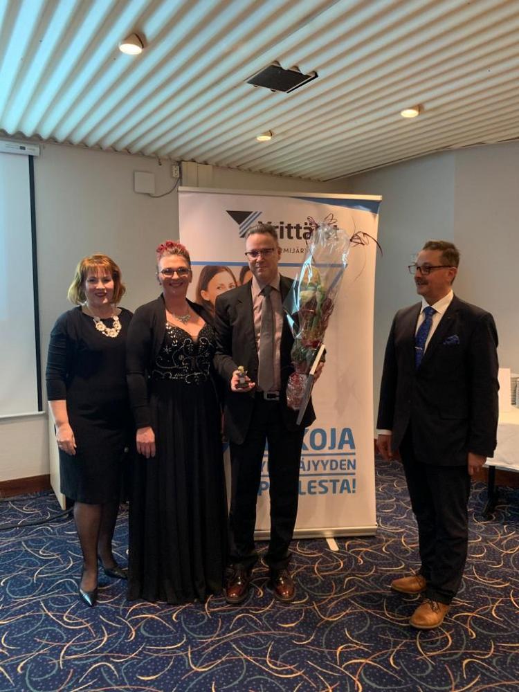 Nurmijärven Yrittäjät ry:n Vuoden Yrittäjän -huomionosoituksen vastaanotti yhtymän puolesta lauantaina 2.11.2019 Nurmijärven Yrittäjien juhlassa Antti Korsisaari.