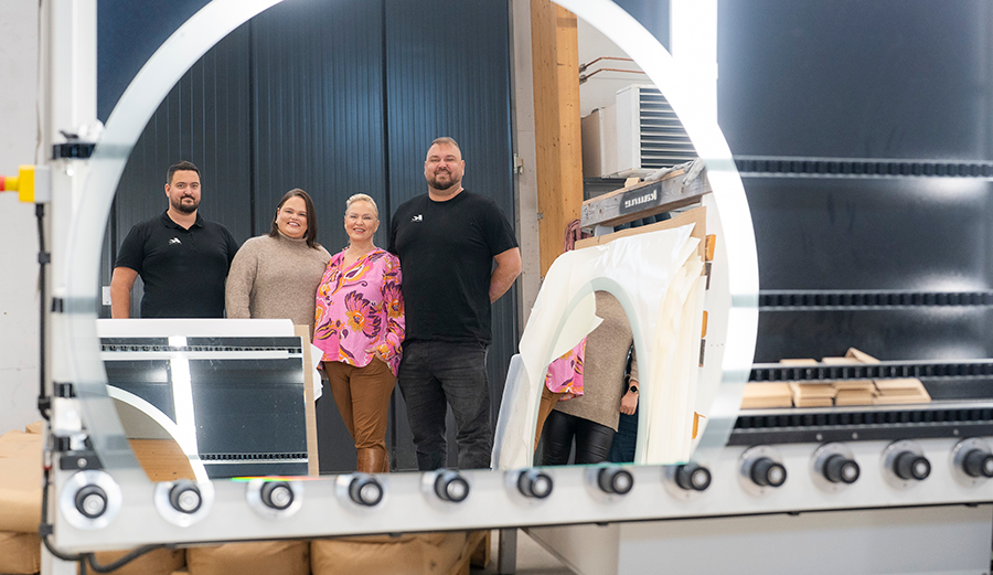 Anita Saksi kertoo iloitsevansa siitä, että kaikki kolme lasta ovat jatkaneet perheyrityksessä. Tytär, talousjohtaja Rebekka Saksi vastaa HR-asioista ja taloudesta, varatoimitusjohtaja Mikko Saksi alumiiniosaamisesta ja Kalle lasipuolesta.