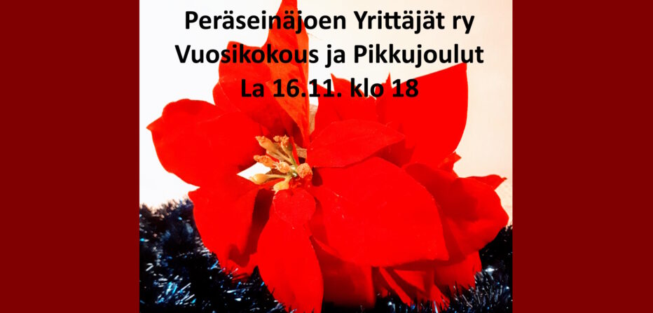 Peräseinäjoen Yrittäjät ry:n vuosikokous ja pikkujoulut järjestetään lauantaina 16.11. klo 18 alkaen Maatilamatkailu Välimaalla.